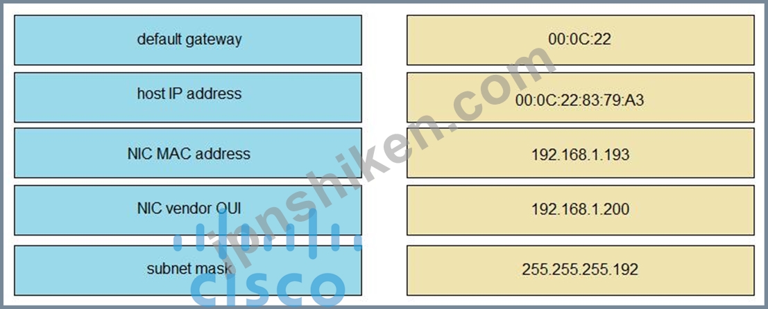 質問176 TCPまたはUDPの詳細を左側から右側の対応するプロトコルにドラッ...