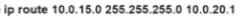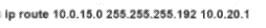 ルータ R1 がネットワークに追加され、Tie 10 0 0 64/26 および 10.0.20.0/24 サブネットで構成されます。ただし、R3 の LAN 宛てのトラフィックはアクセスされません。R1 で実行されたときに、R3 LAN に到達するためのチュニック ルートを定義するコマンドはどれですか?