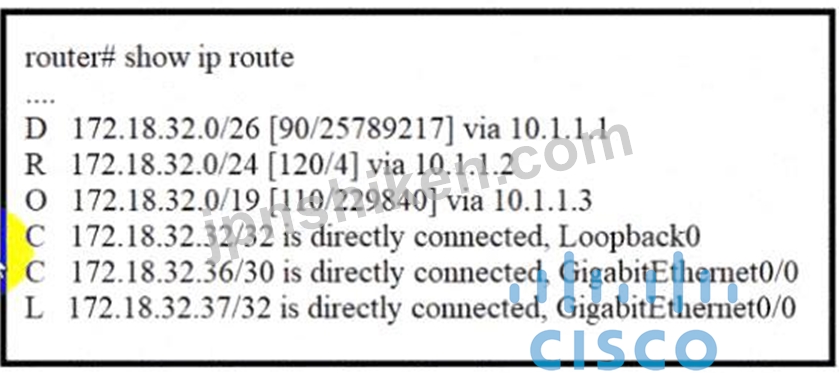 172.18.33.2 から送信されたパケットは、172.18.32.38 宛てです。ルーターはパケットをどこに転送しますか?