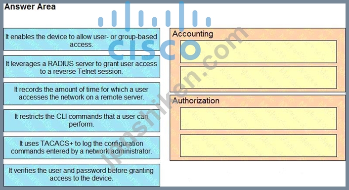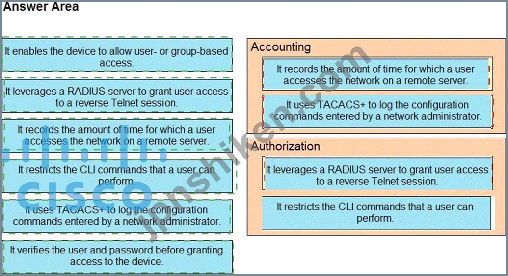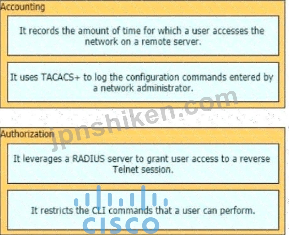 質問430 AAA 機能を左側から右側の対応する AAA セキュリティ サービスに...