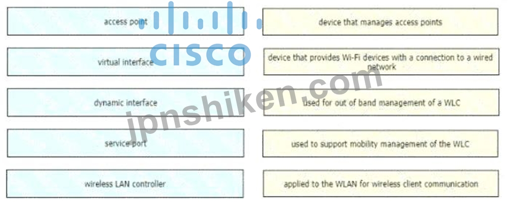WLAN コンポーネントを左側から右側の正しい説明にドラッグ アンド ドロップします。