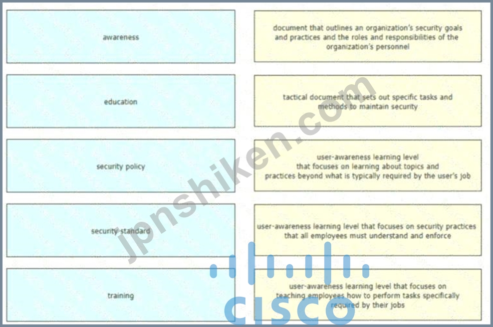 質問80 セキュリティ プログラムの要素を左側から右側の対応する説明に