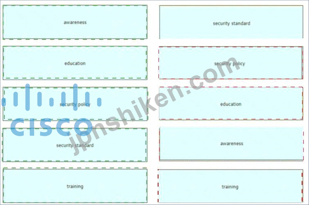 セキュリティ プログラムの要素を左側から右側の対応する説明にドラッグ アンド ドロップします。