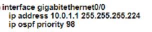 エンジニアは、ルータ R2 が WAN サブネットの DR として選択されるように設定する必要があります。どのコマンド シーケンスを設定する必要がありますか?