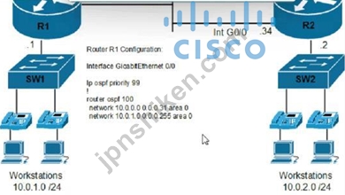質問10 OSPF は、ルーター R1 と R2 の間で構成する必要があります。 DR...