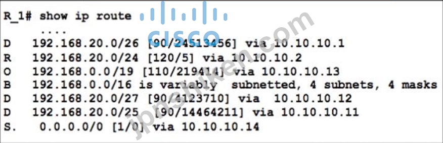 /19, one with a metric of 219414 and another with a metric of 5. The router will choose the entry with the lower metric, which is 5, and forward the packet to the next hop 10.10.10.111.