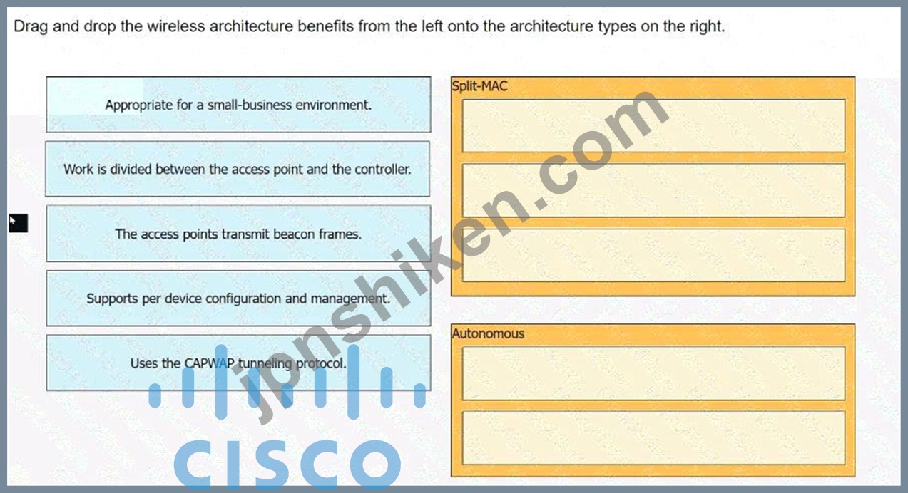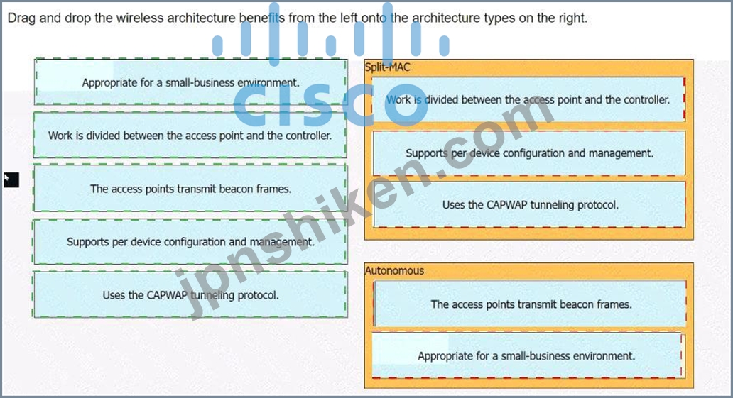 ワイヤレス アーキテクチャのメリットを左側から右側のアーキテクチャ タイプにドラッグ アンド ドロップします。