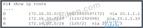 質問391 展示を参照してください。 (Exhibit) ルーター R1 は、10.0.1.0/...