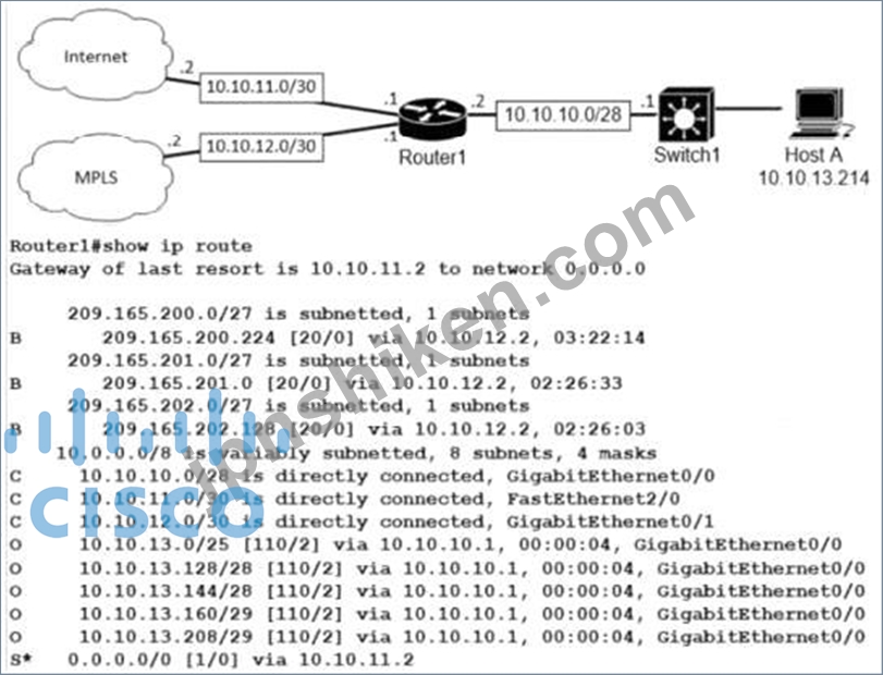 質問56 展示を参照してください。 (Exhibit) ルーター R1 が IP アドレ...