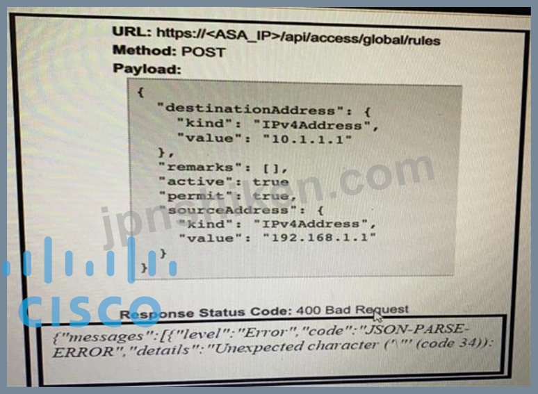 質問3 展示を参照してください。 (Exhibit) このAPIリクエストのエラー...