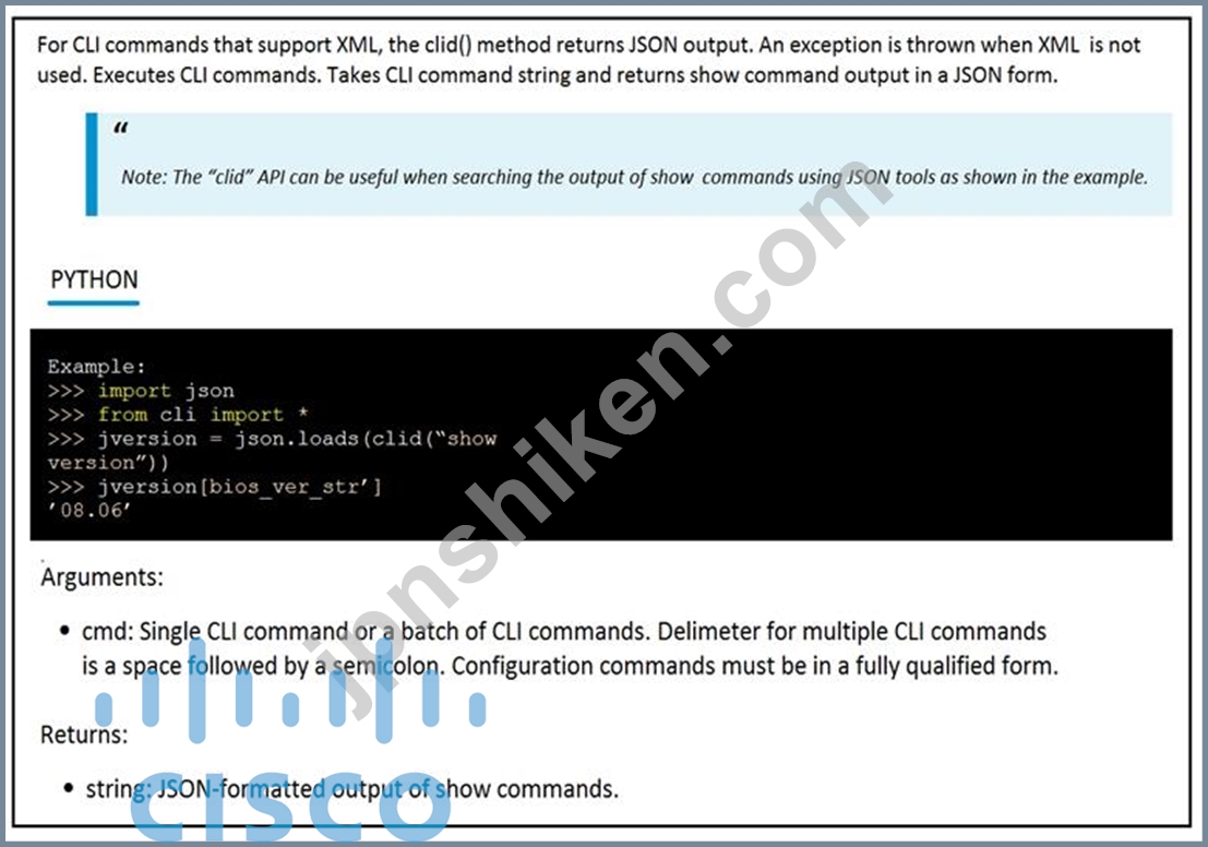pythonインタープリターとCisco python SDKは、デフォルトでCisco NX-OSソフトウェアで利用できます。 SDKのドキュメントには、JSONとXMLの操作でcild()APIを使用する方法が示されています。