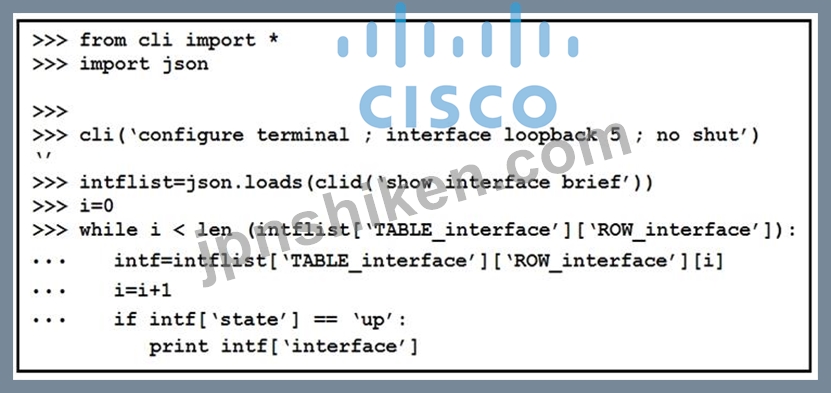 質問2 展示を参照してください。 (Exhibit) pythonインタープリターとC...