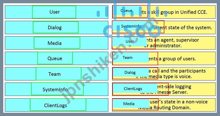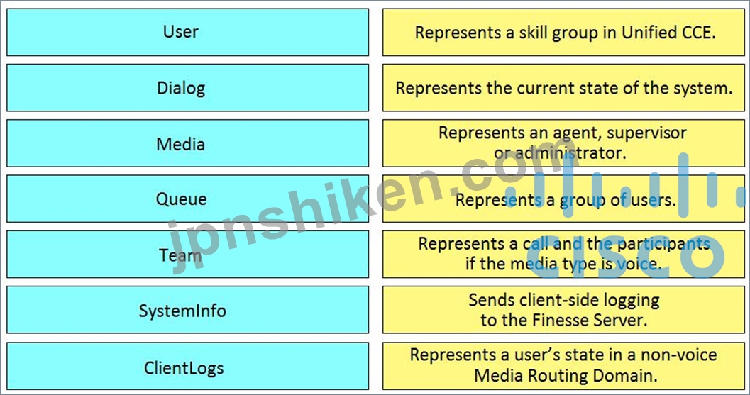 質問179 左側の Finesse API の要素を右側の機能の説明にドラッグ アンド...