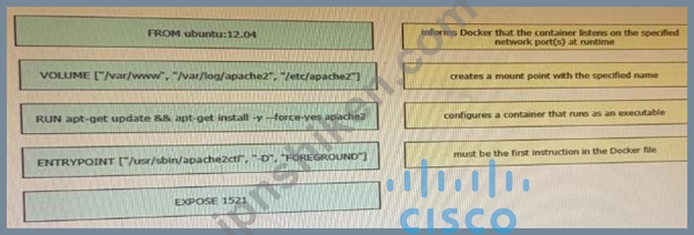 質問69 Docker ファイルの指示を右側の正しい説明にドラッグ アンド ド...