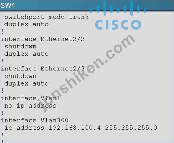 SW1スイッチ管理IPアドレスはSW4からpingできません。何が問題なの?