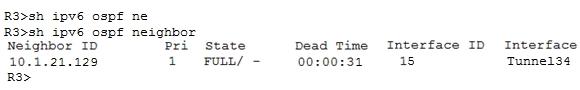 6.上記のスナップショットのとおり、R3に接続されているR2で、インターフェイス設定ipv6 ospf area 0がチェックされている場合、R2とR3の間のIPV6隣接関係は確認できません。