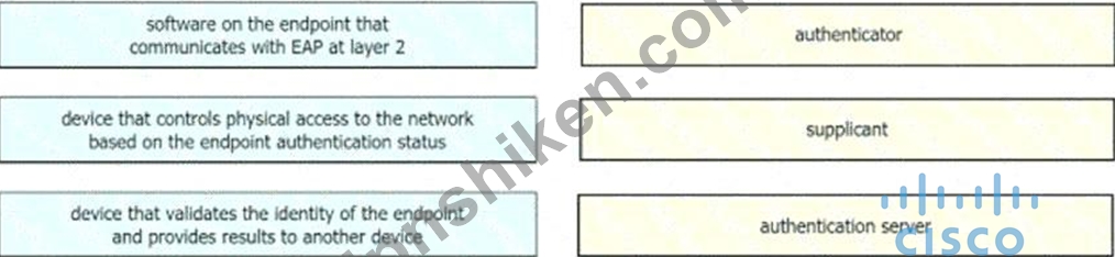 質問112 左側の説明を右側の 802.1X のコンポーネントにドラッグします。...