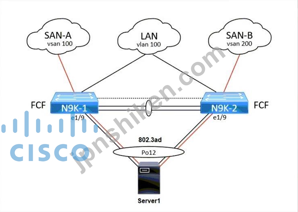 質問1 図を参照してください。エンジニアは、N9K-AスイッチとFCF-A Nex...