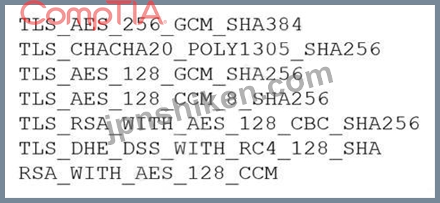 新しい Web サーバーは、新しいセキュア バイ デザインの原則と PCI DSS に準拠する必要があります。これには、オンパス攻撃のリスクを軽減することが含まれます。セキュリティ アナリストは、次の Web サーバー構成を確認しています。 ビジネス要件をサポートするために、セキュリティ アナリストが削除する必要がある暗号は次のうちどれですか?