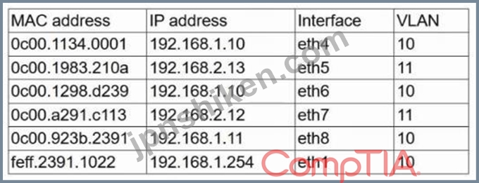 This scenario describes a duplicate IP address. The ARP table shows two different MAC addresses (0c00. 1134.0001 and 0c00.1298.d239) associated with the same IP address (192.168.1.10), which leads to ARP table conflicts and intermittent connectivity. From Andrew Ramdayal's guide: "Duplicate IP addresses occur when two devices on the same network are assigned the same IP address, causing network conflicts. Common issues include manual configuration errors or DHCP lease issues. Resolution includes using IP management tools and avoiding overlaps in DHCP and static IP assignments."