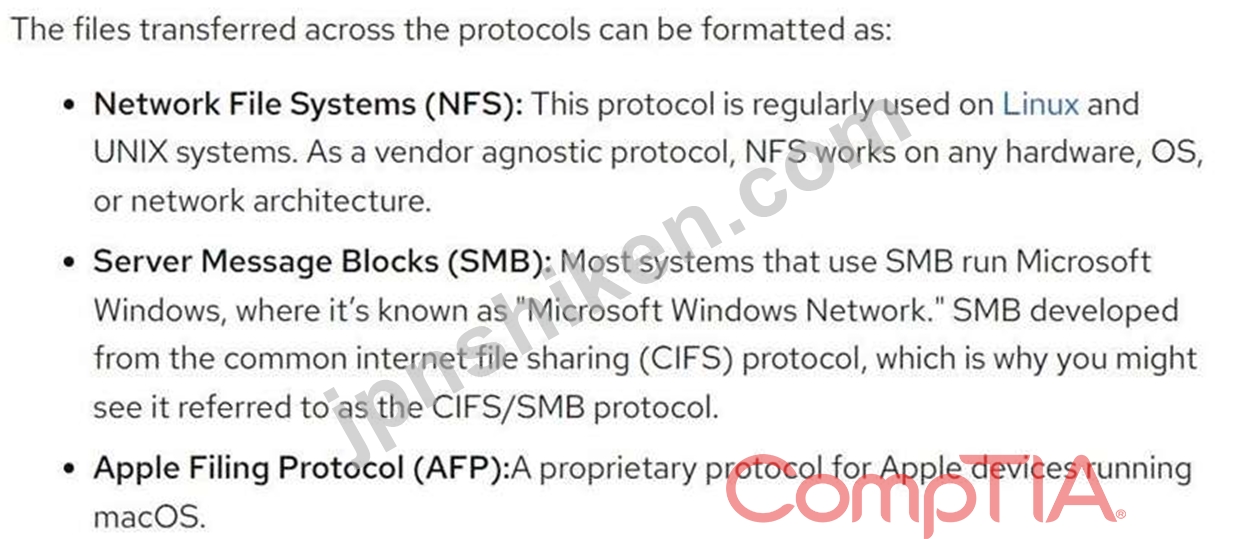 技術者が Linux サーバーを NAS 上の共有に接続しています。このタスクに使用する最も適切なネイティブ プロトコルは次のうちどれですか?