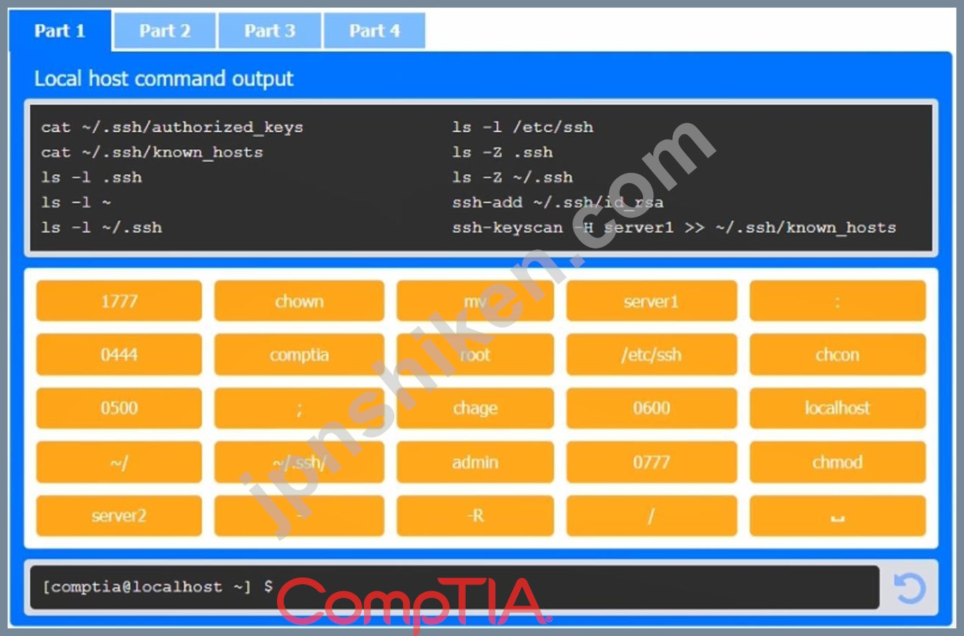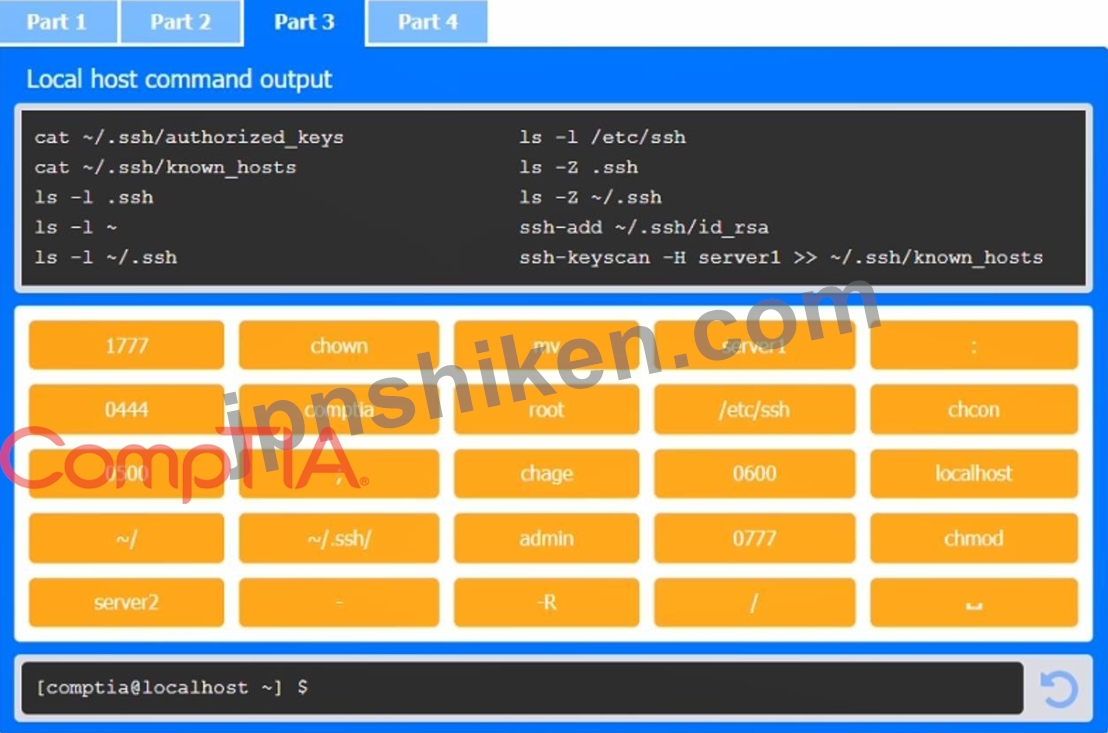 質問48 管理者は、SSH 認証用のキーをリモート サーバーのホーム ディレ...