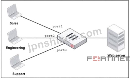 質問10 展示品を参照してください。 (Exhibit) FortiGate には、営業部...