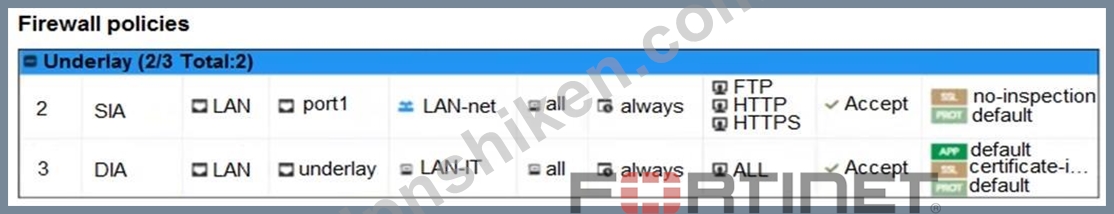 質問16 図を参照してください。管理者はFortiGate GUIを使用してDIAセッ...