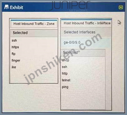 Host-inbound-traffic は、DMZ ゾーンとそのゾーンに接続された ge-0/0/9.0 インターフェイスで構成されます。