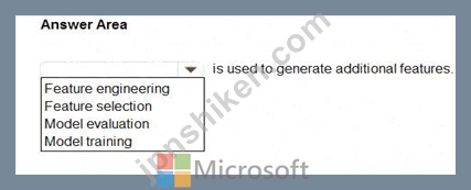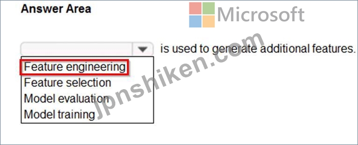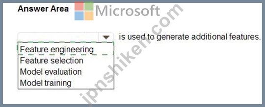 Therefore, based on the AI-900 official concepts and Microsoft's documentation, the correct answer is Feature engineering, as it is the process specifically used to generate additional features that improve machine learning model performance and predictive capability.