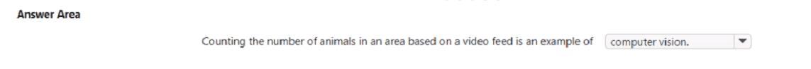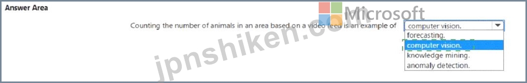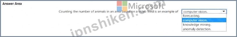 These are classic computer vision tasks, as they involve analyzing visual inputs (video or image data) and identifying objects (in this case, animals). Azure provides services such as Azure Computer Vision, Custom Vision, and Video Indexer, which can perform object detection, counting, and activity recognition using AI models trained on visual datasets.