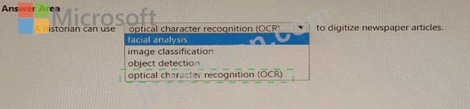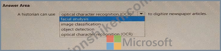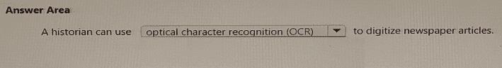Therefore, to digitize newspaper articles and convert printed words into editable digital text, the correct technology to use is Optical Character Recognition (OCR), provided by the Azure Computer Vision API.