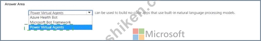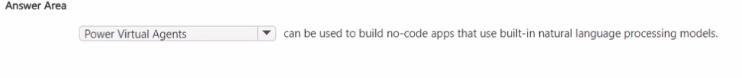 Therefore, the most appropriate choice that "can be used to build no-code apps that use built-in natural language processing models" is Power Virtual Agents - the official Microsoft no-code chatbot solution for conversational AI workloads.