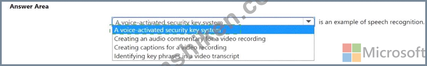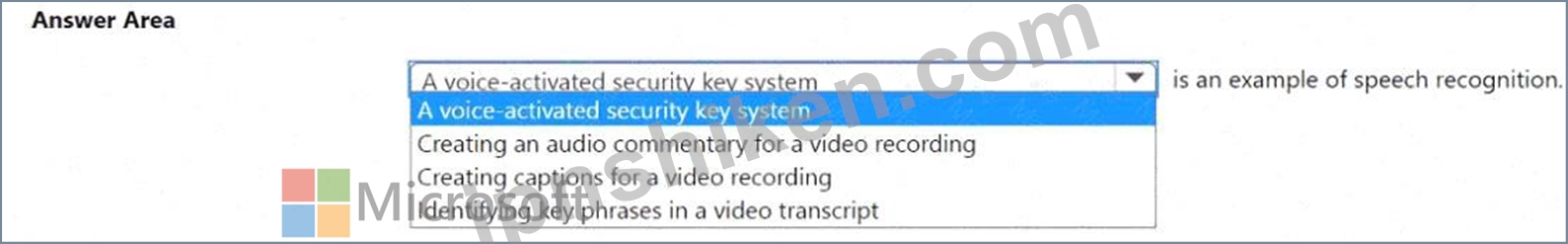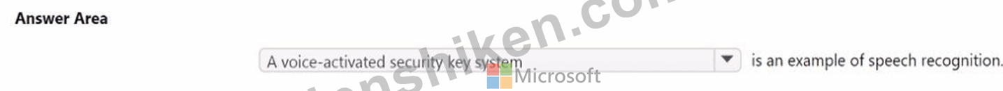 The correct completion of the sentence "_____ is an example of speech recognition." is A voice-activated security key system.