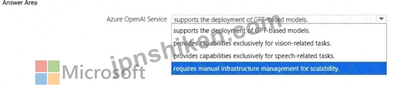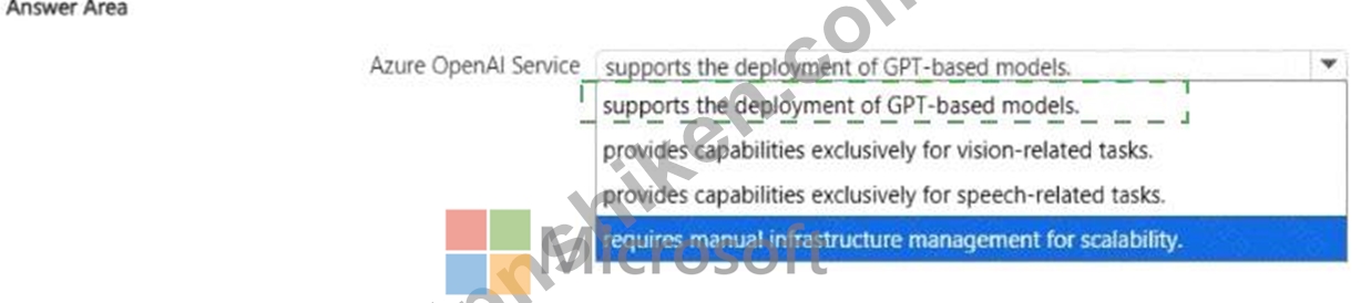 * Requires manual infrastructure management for scalability - # Incorrect. Azure OpenAI is a fully managed service; scalability and performance are handled automatically by Azure.