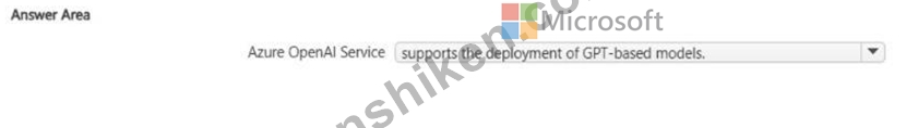 * Supports the deployment of GPT-based models - # Correct. Azure OpenAI is specifically designed for deploying and operationalizing GPT models and similar transformer-based architectures.