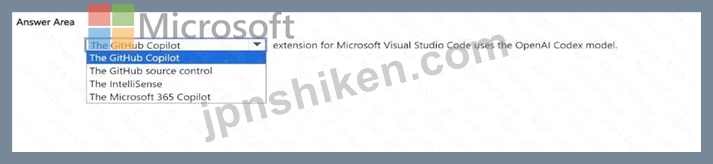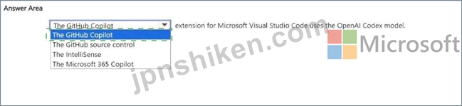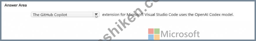 Therefore, the correct choice that uses the OpenAI Codex model in Visual Studio Code is GitHub Copilot, aligning with Microsoft's AI-900 learning objectives under "Identify common use cases for Azure OpenAI and GitHub Copilot."