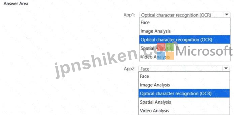* App1: Uses a set of images and photos to extract brand names # Image AnalysisThe Azure AI Vision - Image Analysis service (formerly part of Computer Vision) can detect and extract brands, objects, text, and other visual features from images. It uses advanced image classification and object detection models to recognize logos and identify brand names (for example, "Microsoft" or "Coca-Cola") in photos. The Image Analysis API can also return descriptive tags, scene descriptions, and confidence scores. Therefore, since App1 analyzes static images to extract brand names, it specifically relies on the Image Analysis feature of Azure AI Vision.