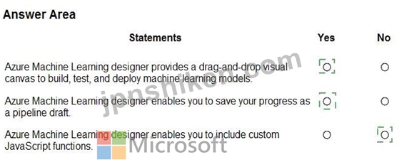* Drag-and-Drop Visual Canvas # YESThe Azure Machine Learning Designer indeed provides a graphical interface where users can connect prebuilt modules for data preprocessing, training, evaluation, and deployment. Microsoft documentation describes it as a "drag-and-drop visual environment that simplifies machine learning model creation." This allows beginners and business users to construct machine learning pipelines intuitively, confirming this statement as True.