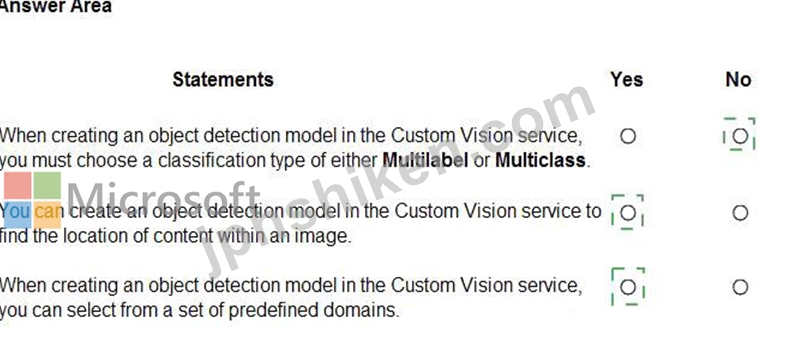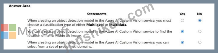 * Predefined Domains - YESThis statement is true as well. When you create a new Custom Vision project, you must select a domain, which is a predefined optimization setting tailored to specific use cases such as retail, food, landmarks, or general images. These domains are designed to improve model accuracy by applying specialized transfer learning features based on the type of images you will analyze.