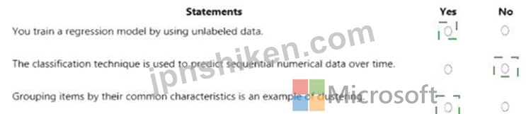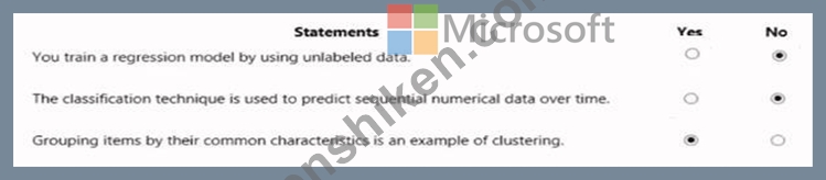 * "Grouping items by their common characteristics is an example of clustering." - Yes.This statement is correct. Clustering is an unsupervised learning technique used to group similar data points based on their features. The AI-900 study materials describe clustering as the process of "discovering natural groupings in data without predefined labels." Common examples include customer segmentation or document grouping.