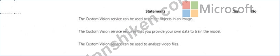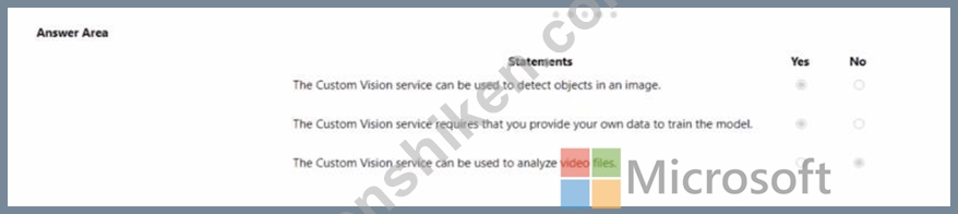 * "The Custom Vision service can be used to analyze video files." - No.This is incorrect. Custom Vision is limited to image-based analysis. To analyze video content (detecting objects or motion in moving frames), Azure provides Video Indexer, which is a separate service designed for extracting insights from video files, including speech, objects, faces, and emotions.