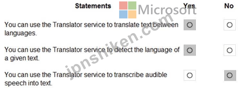 * "You can use the Translator service to transcribe audible speech into text." # NoThis statement is false.