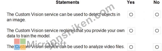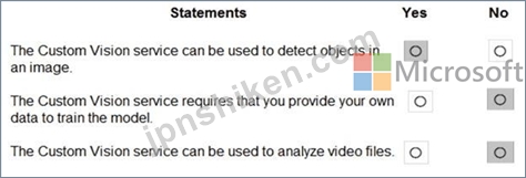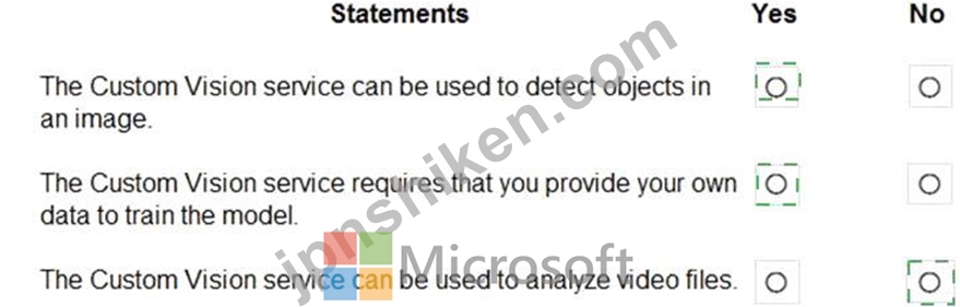 * "The Custom Vision service can be used to detect objects in an image." # YesThis statement is true.