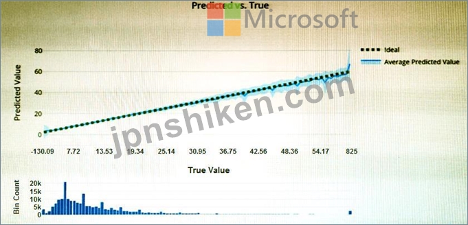 What is a Predicted vs. True chart? Predicted vs. True shows the relationship between a predicted value and its correlating true value for a regression problem. This graph can be used to measure performance of a model as the closer to the y=x line the predicted values are, the better the accuracy of a predictive model. Reference: https://docs.microsoft.com/en-us/azure/machine-learning/how-to-understand-automated-m
