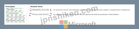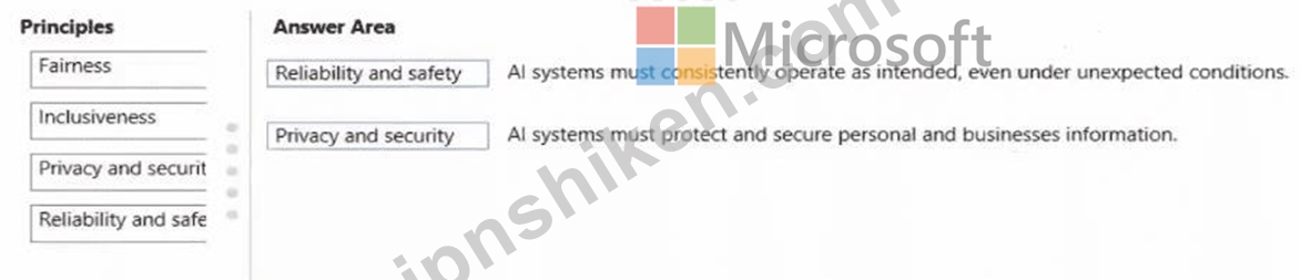The correct answers are derived from the Microsoft Azure AI Fundamentals (AI-900) Official Study Guide and the Microsoft Learn module "Identify guiding principles for responsible AI." Microsoft defines six core principles of Responsible AI: