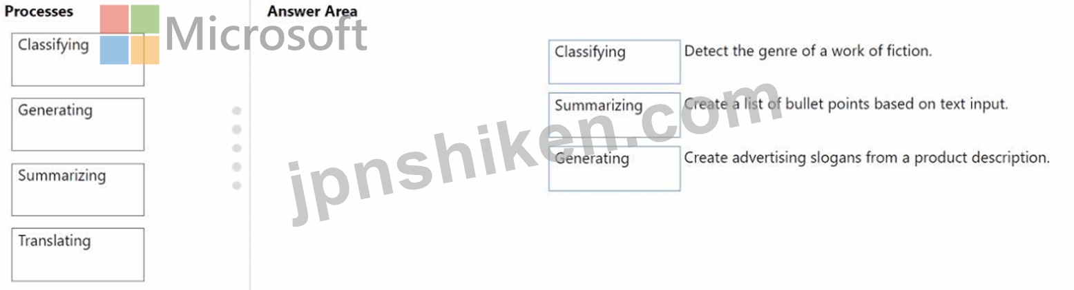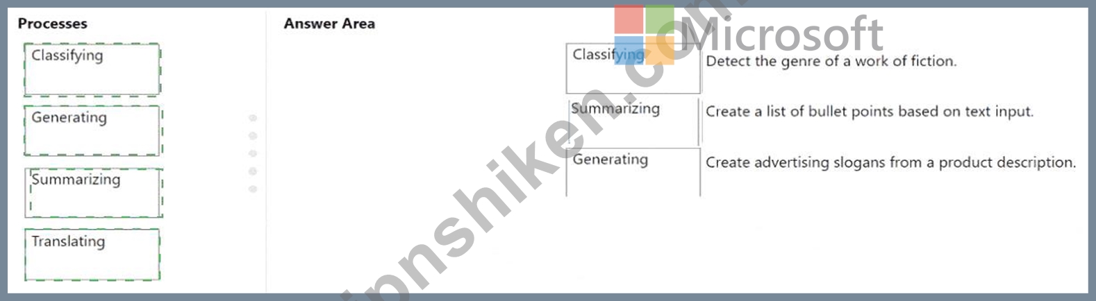 Thus, these mappings align directly with the Azure OpenAI LLM capabilities taught in AI-900, linking each NLP process with its most suitable real-world task.