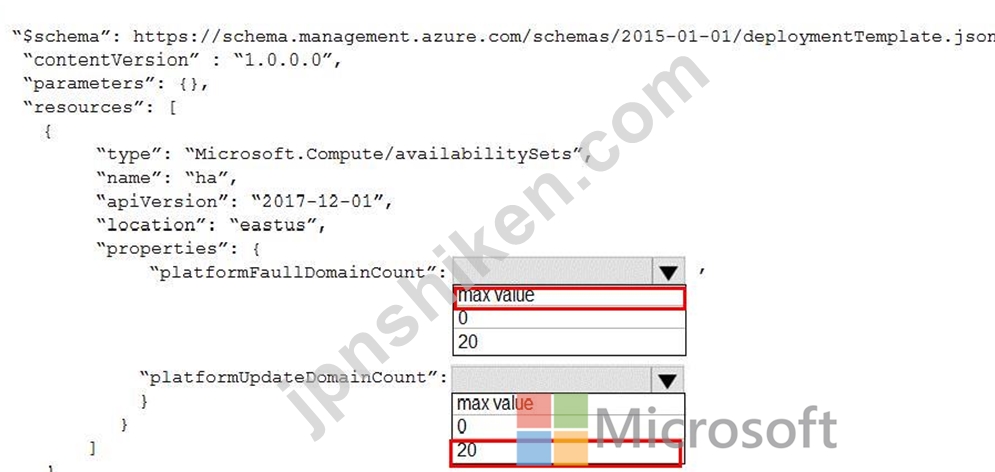 質問102 Azure Resource Managerテンプレートを使用して、20のAzure仮想...