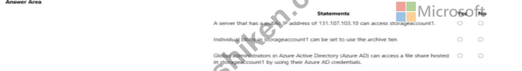 質問117 AzureStorageアカウントstorageaccount1を含むAzureサブスクリプ...