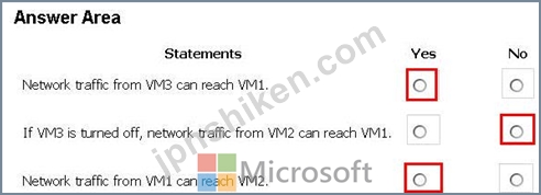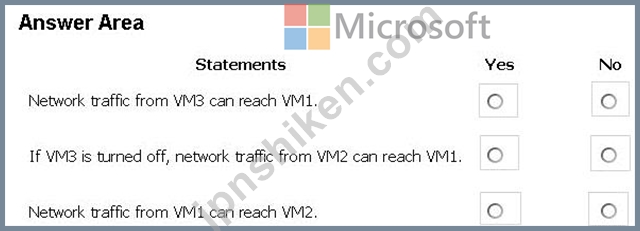 質問121 VNET1、VNET2、およびVNET3という名前の3つの仮想ネットワークを...